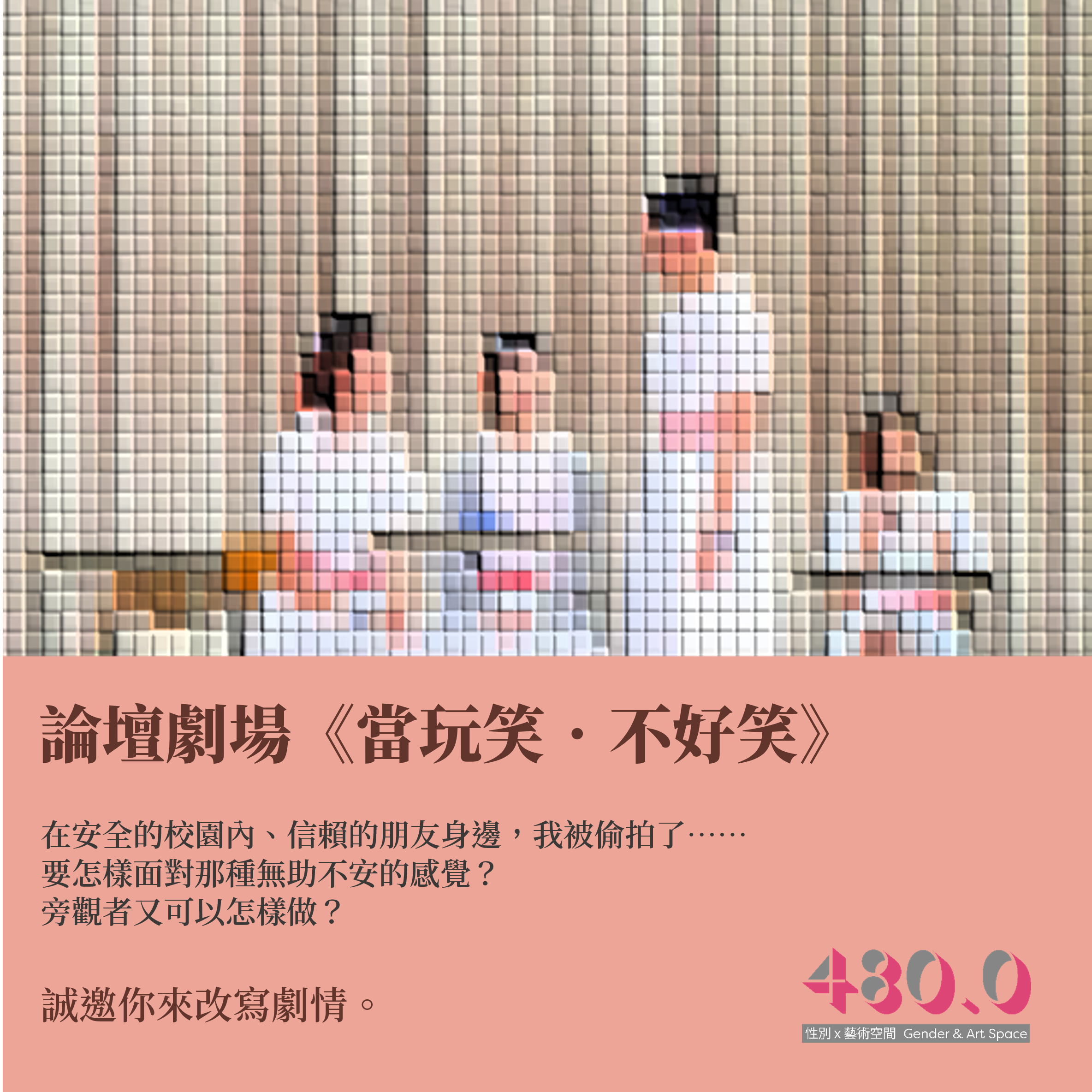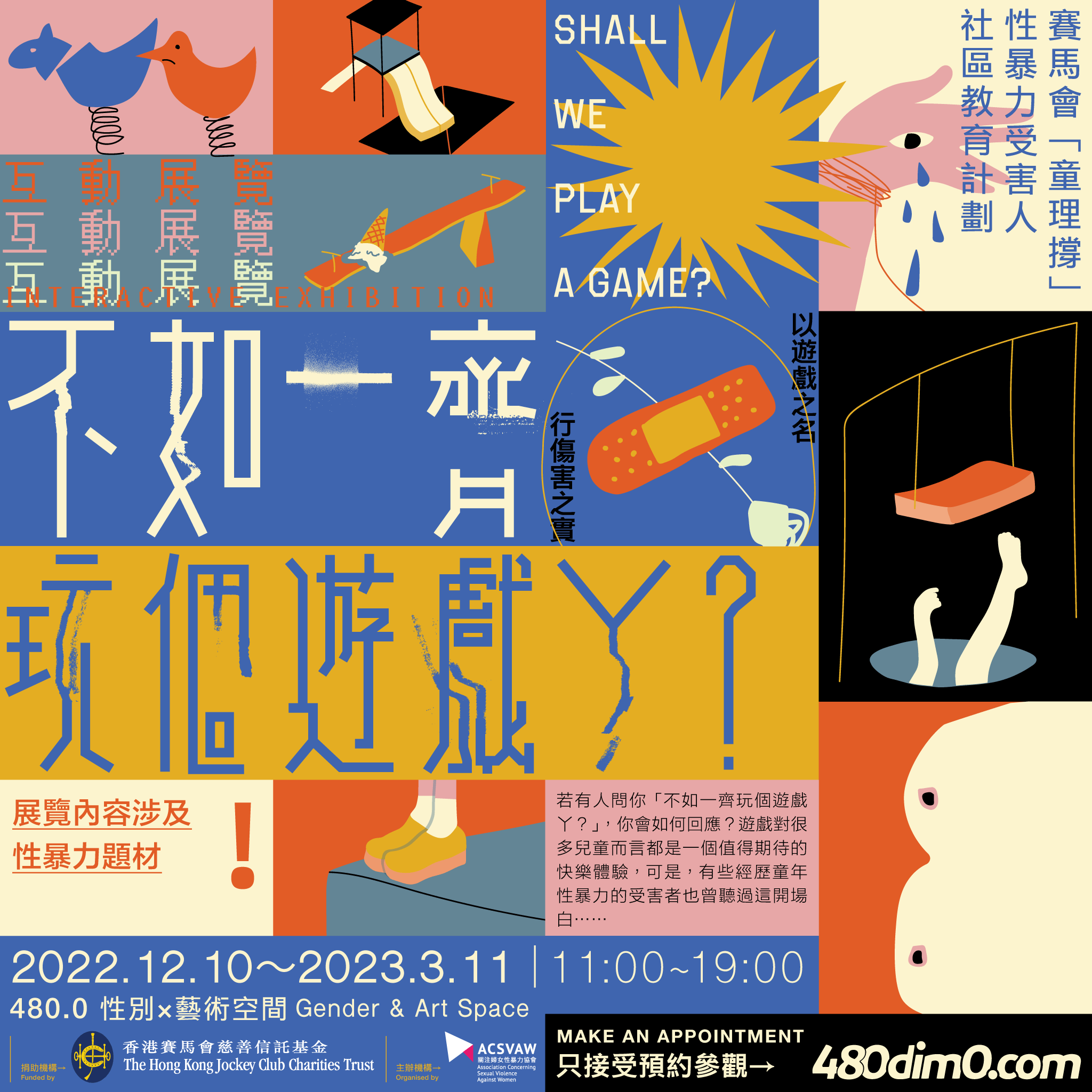 480.0 Gender & Art Space 會於2025年5月31日遷出位於油麻地的空間。 自2017年成立以來,我們致力把性別平等角度注入藝術和生活,融合不同界別、不同團體的想法,拆解生活中的性/別事,了解性暴力的根源,從而提升大眾對性/別及性暴力議題的興趣和認知。在這段時間裡,我們舉辦了22個不同主題環繞性/別的展覽、及不同工作坊和社區活動,並為性暴力受害人及社群提供平台。 隨著我們告別油麻地的空間,團隊將投入於記錄和反思,整理過往八年的經驗,亦希望探討空間於曾經歷性暴力的朋友和社群之意義。 即使離開了實體空間,我們於性別平等教育及議題上繼續深耕的信念不變,團隊亦打算嘗試以流動形式持續推動工作,探索未來在香港不同地區舉辦活動及展覽的可能性,並持續進行教育和社區工作,將反性暴力的理念傳播到更廣泛的社群。 480.0 Gender & Art Space bids farewell from its Yau Ma Tei location on 31 May 2025. Since 2017, we've integrated gender equality into art and life, fostering understanding of the roots of sexual violence and raising public awareness. We've organised 22 gender-themed exhibitions, workshops, and community events, providing a vital platform for survivors. As we depart, our team will reflect on eight years of experience and the significance of this space for those affected by sexual violence. While we'll no longer have a physical presence, our commitment to gender equality education remains. We plan to adopt a nomadic approach, exploring future events and exhibitions across Hong Kong to spread our anti-sexual violence message more widely.