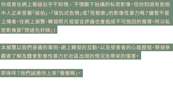 簡介:由台灣 裸菜市場 製作。三位勇敢的受害者,願意敞開心房向大家說出復仇式色情帶來的恐懼⋯⋯