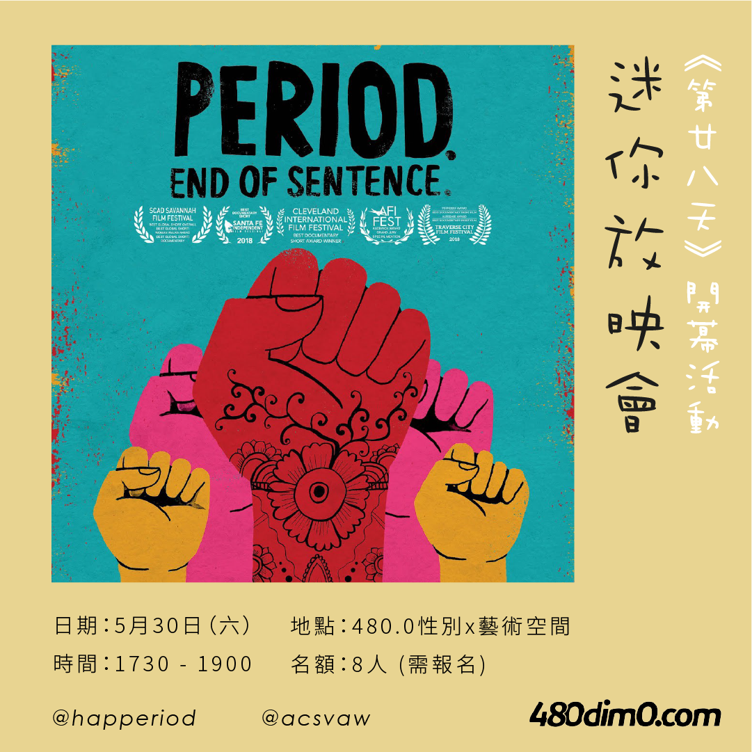 開幕活動<迷你放映會:Period End of Sentence>:5月30日1730-1930