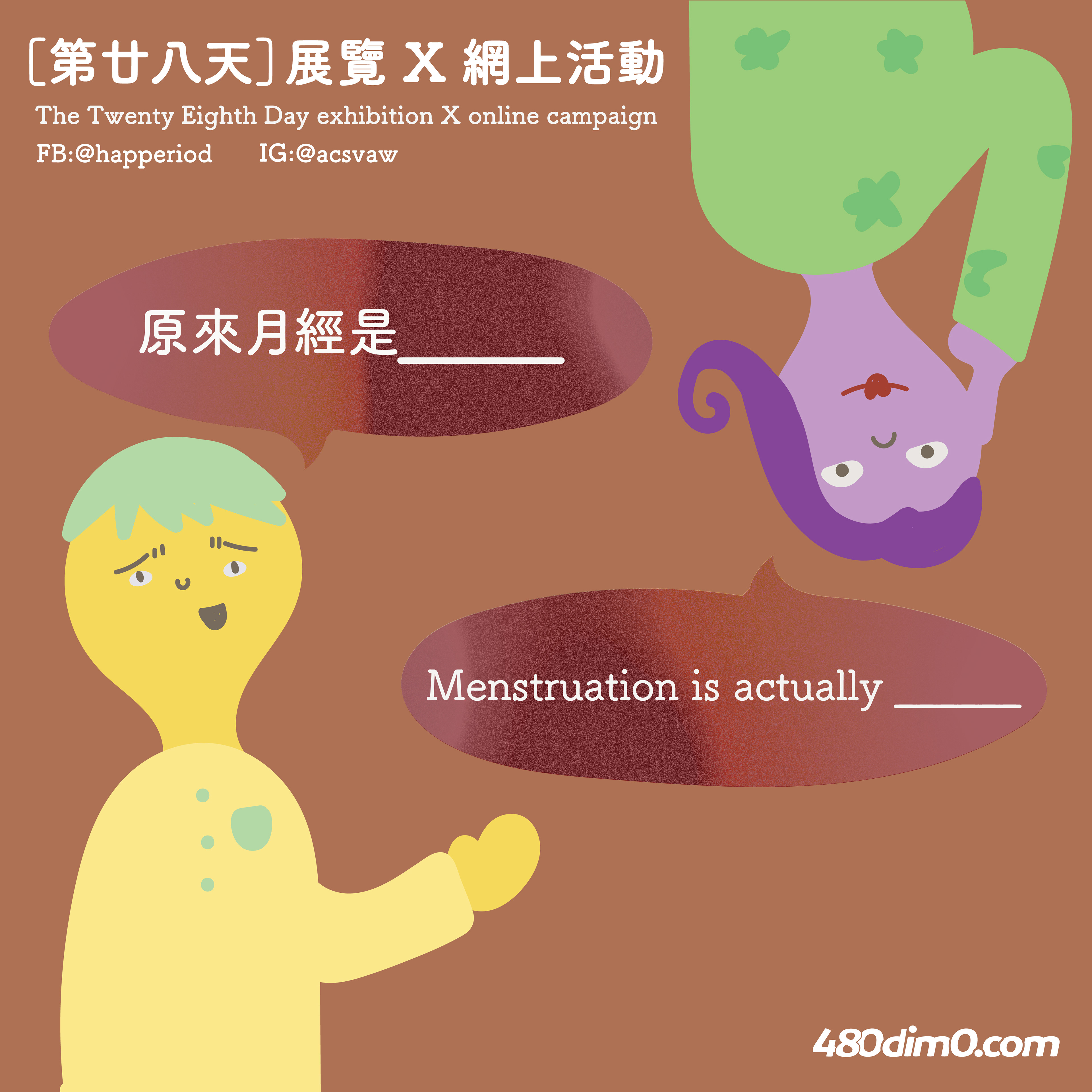 To celebrate the Menstrual Hygiene Day on the 28th May, we are not only holding an exhibition "The Twenty-Eighth Day" at 480.0 Gender & Art Space, but also doing an online campaign for everyone to share a new fact or idea you found out about menstruation - "Menstruation is actually __". Everyone can share a new thought about menstruation, break its taboo and stigma. Participants for the 10 most popular ideas will receive a gift set. Let's join us!